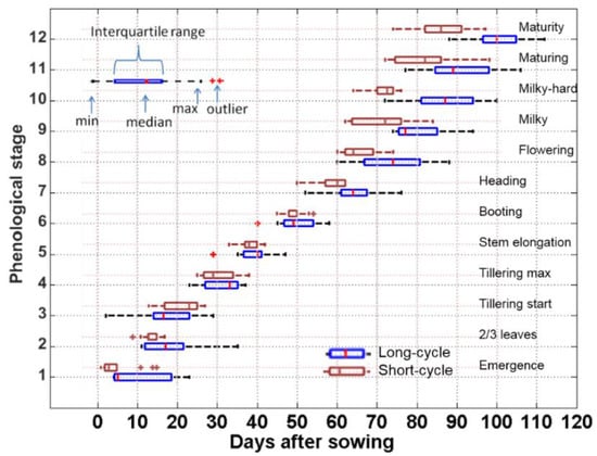 | 1: seedling, emergence | 5: stem elongation | 9. milky stage |