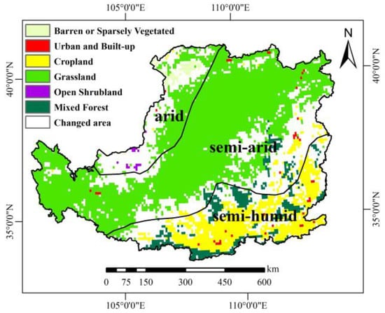Unchanged vegetation map of MCD12C1 product from 2001 to 2012 in the Loess Plateau.