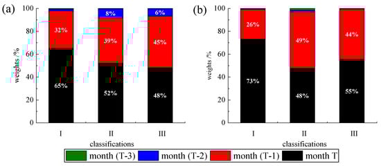 The value of SI is set to 0.1 with = 286 probable weight combinations (Table 2). In the following parts, for convenience, we will use methods 1–4 to refer to the no lag, lag, lag-accumulation, and the proposed weighted time-lag methods, respectively.