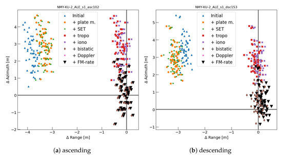Additionally, the observed range time is perturbed by the tropospheric and ionospheric path delay, and both the azimuth and range times can be affected by the instrument processing biases and approximations [10,33,35], see Section 3.3.