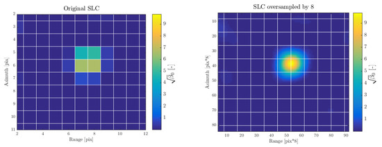 For finitely sampled SAR images, oversampling and IRF peak fitting are necessary to obtain precise radar datum position of the reflector’s response at the sub-pixel level.