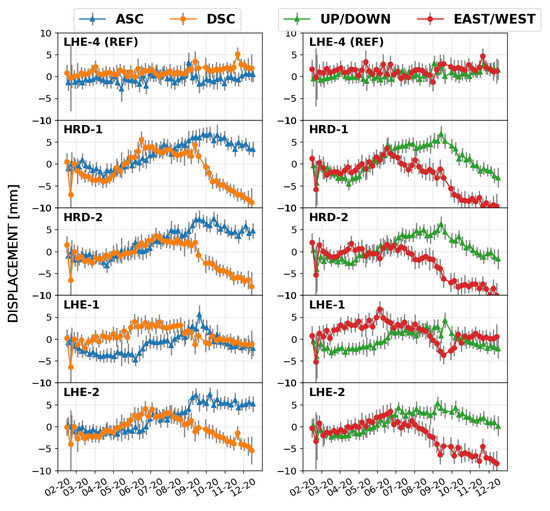 The unwrapped phase time series from Equation (13) are then used for parameter estimation via the model in Equation (11), without the ambiguities. Following the conventional PS-InSAR methodology [36], displacement time series are separated from residual phases using spatio-temporal filtering of Atmospheric Phase Screen [38].