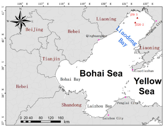 The Bohai Sea ranges from 117°35’E to 122°15’E longitude and 37°07’N to 41°00’N latitude and includes LDB, Bohai Bay, Laizhou Bay, the Central Bohai Sea, and the Bohai Strait. LDB is in the northern temperate zone, the long-term average temperature in this region is 10.7 °C, and the average annual rainfall is approximately 500 mm. The average annual wind speed is 6.2 m/s and the predominant wind direction is NNW [34].