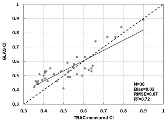 4.1. GLAS CI vs. TRAC-Measured CI
