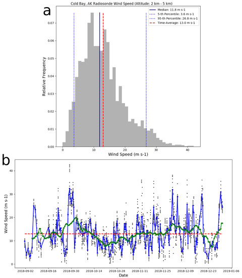 Between September and December 2018, Veniaminof volcano in the Aleutian islands underwent a period of unrest characterized by a sequence of small-moderate explosive episodes, lava flows, and a mix of passive and active emissions (Taryn Lopez pers. comm); [37]. Between September 3–4 the Alaska Volcano Observatory (AVO) raised its aviation color code (ACC) and volcano alert level (VAL) from Green/Normal to YELLOW/Advisory and then to Orange/Watch based on an increase in seismic activity and reports and webcam footage of low-level pulsatory ash emissions. On 21 November 2018, significant explosive activity sent an ash plume to a height of 15,000 ft (4.6 km), sending ash 150 km downwind which prompted AVO to raise the ACC/VAL to RED/Warning. Other than this event, AVO maintained the Orange/Watch color code and alert level through the beginning of January 2019 when the activity stopped [37]. Throughout this period, height estimates retrieved from the probabilistic CrIS algorithm were dominantly below 4 km with several plumes exceeding 5–6 km over small areas (Figure 4b). This is an ideal eruption on which to demonstrate this new flux algorithm using CrIS data since the high SZA at this latitude significantly degrades the signal-to-noise ratio of UV-based data, preventing reliable analyses of this type. Using IR data, like that from CrIS, is the only way to measure the flux consistently throughout this interval particularly between the early and late stages of this eruptive sequence.