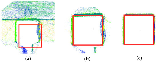 Results of the neighborhood definition: (a) sample point cloud, (b) Weinmann’s [26] method, and (c) using Algorithm 3.