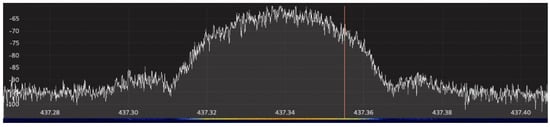 Although the increase of this noise floor, the communication with the balloon and the ground station is feasible during almost all the ascending phase. To take some measurements of the received signals, an additional Software Defined Radio (SDR) module was installed near the ground station. Figure 9 presents a short fragment of the spectrum history retrieved with this device while the balloons were flying. At the top of the figure, the spectrum of the current received signal is plotted. The presented curve shows the shape of a Gaussian Minimum-Shift Keying (GMSK) modulated signal centered at 437.35 MHz. Additionally, at the bottom of the figure, a history of the spectrum is presented over time. A color scale is used in this history to highlight the power of the signal, being orange the great values, and blue the lowest ones.