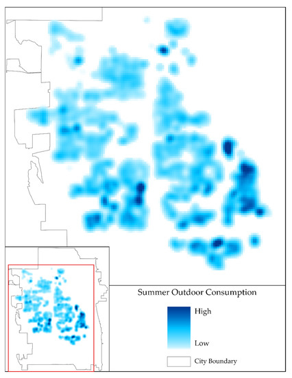 Kernel Density Estimation of Summer 2016 metered water consumption in the City.