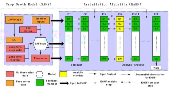 - Zhao, Y.; Chen, S.; Shen, S. Assimilating remote sensing information with crop model using Ensemble Kalman Filter for improving LAI monitoring and yield estimation. Ecol. Model. 2013, 270, 30–42. [Google Scholar] [CrossRef]