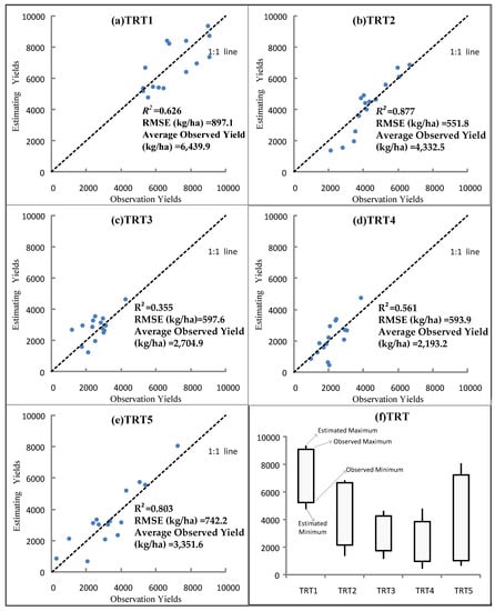 - Peng, Y.; Zhu, T.; Li, Y.; Dai, C.; Fang, S.; Gong, Y.; Wu, X.; Zhu, R.; Liu, K. Remote prediction of yield based on LAI estimation in oilseed rape under different planting methods and nitrogen fertilizer applications. Agric. For. Meteorol. 2019, 271, 116–125. [Google Scholar] [CrossRef]