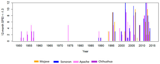 | 12 month—SPEI | Sonoran | −7.29 × 10−5 | 0.300 |