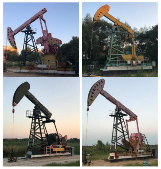 - Zhuo, J.; Dang, H.; Wu, H.; Pang, H. Pattern Recognition for the Working Condition Diagnosis of Oil Well Based on Electrical Parameters. In Proceedings of the 2018 5th IEEE International Conference on Cloud Computing and Intelligence Systems (CCIS), Nanjing, China, 23–25 November 2018; pp. 557–561. [Google Scholar]