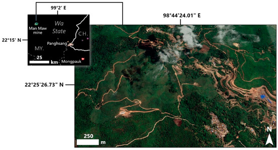 The Man Maw tin mine located within Wa State (inset). Source: Google Earth (Maxar Technologies), 1 March 2017.
