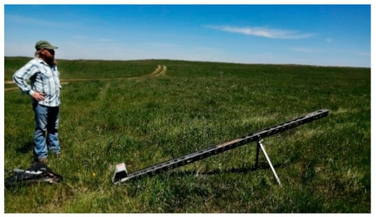 Fixed-wing UAVs are hand-launched typically from a launcher ramp and require runways for takeoff and landing areas (Figure 2). These UAVs can travel several kilometers from the launch point and fly at high cruise altitudes and speeds, cover larger areas, and get a centimeter-level accuracy of ground sample distance. These characteristics make them excellent platforms to obtain fast and detailed information of agricultural field environments. Fixed-wing UAVs are a wise option for heavier/denser payloads. Because of the higher endurance and payload capacity of fixed-wing UAVs, they are ideal platforms for operations such as pesticide spot spraying that require longer flight endurance [48]. They can be operated fully autonomously and require hardly any piloting skills.