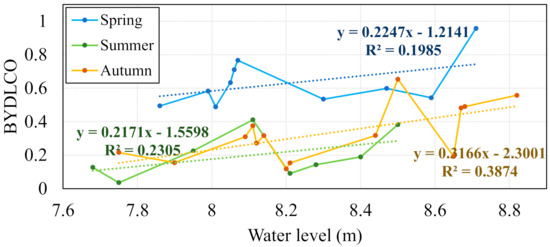 Change of BYDLCO with rising water level in spring, summer, and autumn seasons.