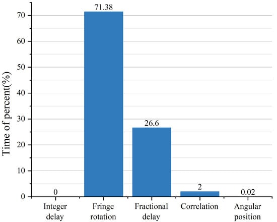As shown in Table 6, the value differences between CPU version and GPU version are listed for comparison. Mean absolute error (MAE) are employed to measure the difference of the two methods. It can be seen that the errors of FFT and fractional delay between two versions are both around 10 6 . The MAE difference of the residual delay step is about 5.1 × 10 15 . It can be observed from the overall MAE results that the calculation accuracy of the angular position can bee guaranteed.