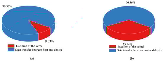 Figure 9. Proportion of kernel calculation and data transmission time. (a) Without the CUDA stream for optimization. (b) Optimization after using CUDA stream.