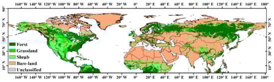| 20 | Mosaic cropland (50–70%)/vegetation (grassland/shrubland/forest) (20–50%) | Bare-Land |