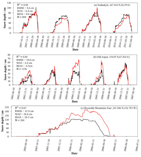 - Ménard, C.B.; Essery, R.; Barr, A.; Bartlett, P.; Wever, N. Meteorological and evaluation datasets for snow modelling at ten reference sites: Description of in situ and bias-corrected reanalysis data. Earth Syst. Sci. Data 2019, 11, 865–880. [Google Scholar] [CrossRef]