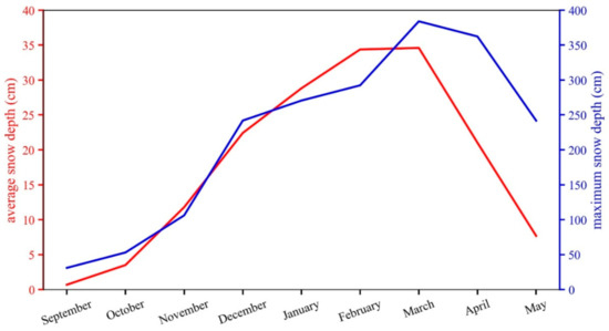 - Zhong, X.; Zhang, T.; Kang, S.; Wang, K.; Zheng, L.; Hu, Y.; Wang, H. Spatiotemporal variability of snow depth across the Eurasian continent from 1966 to 2012. Cryosphere 2018, 12, 227–245. [Google Scholar] [CrossRef]