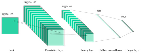 where ∗ represents the convolution operation, is the jth output feature map of the kth layer, is the ith output feature map of the (k−1)th layer, is the weights between the ith input map and the jth output map, is the bias, and f(·) represents the rectified linear unit active function.