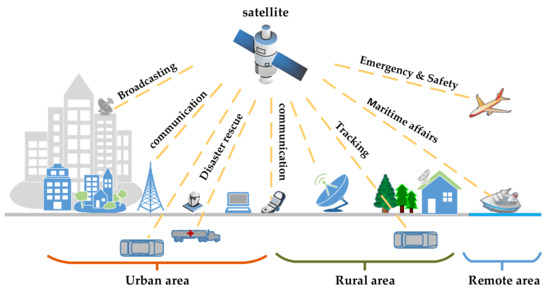 With the rapid development of aerospace and wireless communication technology as well as the gradual deepening of information construction, the space satellite network is developing at an unprecedented speed. As an important link network in the international communication network, satellite network is widely applied in remote sensing, detection, meteorology, communication, navigation, emergency rescue and other fields, as shown in Figure 1. Especially in the field of communication, which is an important means of information transmission and exchange in human social life, satellite communication, as a supplementary communication method of terrestrial communication, has achieved great success and has become an indispensable part of people’s life. Under the dual action of social demand and technology development, satellite communication in the 21st century is climbing to a new level.
