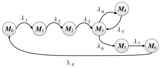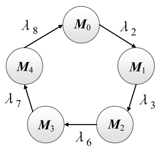 - Step3: Working on the system performance evaluation with the steady-state probability based on the MC. Specifically, we can use Markov’s theory to obtain the steady-state probabilities of each marking and then obtain the relevant parameters.