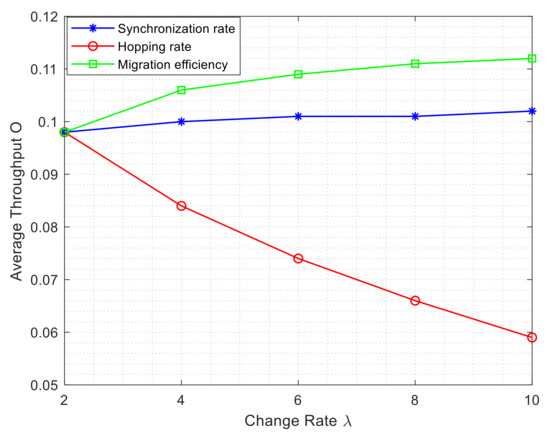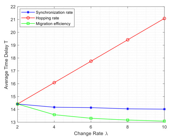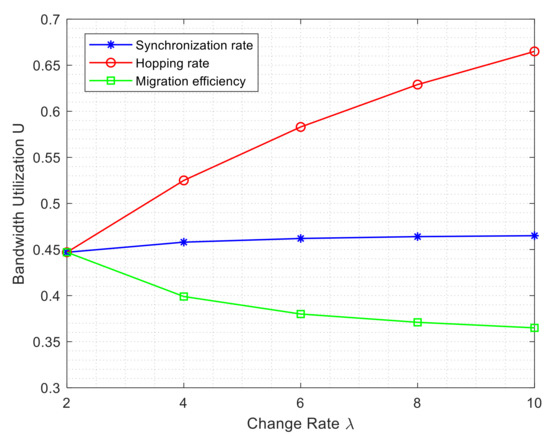 As shown in Figure 14, hopping rate continues to be the main factor affecting the consumption of bandwidth resources. As the hopping rate increases, the bandwidth utilization of the network link also grows. The reasons for this phenomenon can be explained as follows: faster hopping speed, shorter duration of single service, and more frequent data migration, which consumes bandwidth resources additionally. Thus, the competition between normal business and data migration to use network bandwidth makes the consumption of bandwidth resources more apparent. The increase in migration efficiency can reduce the utilization of bandwidth, so an efficient data migration scheme will go some way to alleviating the consumption of bandwidth resources caused by high-speed hopping.