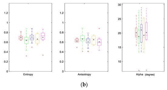 Before the discriminant analysis, the statistical analysis of the polarimetric derived matrices of different kinds of rock was performed in Matlab 2020a. A Kruskal–Wallis rank sum test [46] was firstly carried out on the rock samples to see the difference between the polarimetric features and whether the difference can differentiate various rock groups significantly. The Kruskal–Wallis rank sum test is a nonparametric test that does not assume a normal distribution of the data. The test helps a lot when comparing the difference between more than two groups by assessing the statistical differences of the sample means among the rock groups. Moreover, box-plots of different polarimetric parameters derived from Sentinel-1 data were also plotted for further analysis.