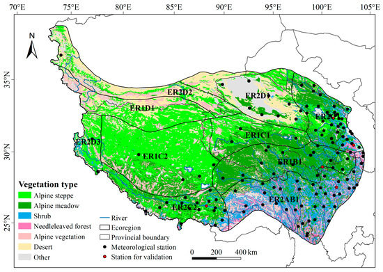 Location of the Tibetan Plateau and its vegetation types and eco-geographical regions.
