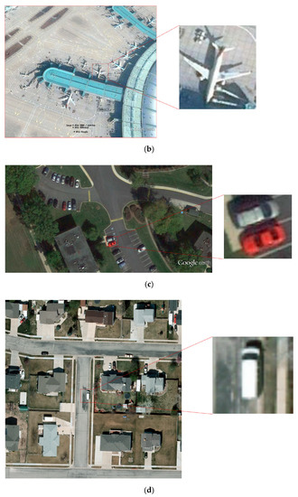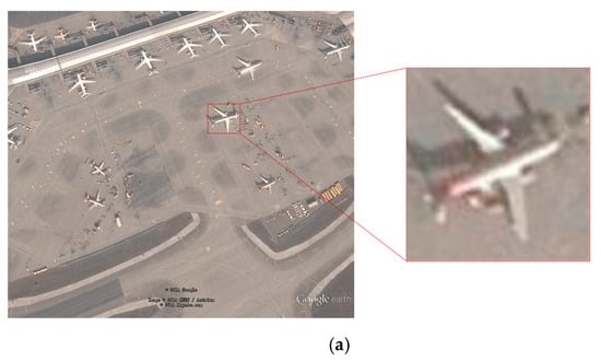 The small size of the targets: remote sensing targets are acquired at high altitude and contain a large number of small targets which may be of large size in ordinary images. For example, in remote sensing images, the pixels of aircraft may be only 10 × 10 to 20 × 20, and for cars may be even less.