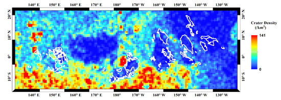The density of impact craters larger than 1 km in diameter in the MFF. It can be seen that the craters in yardangs’ area are indeed more sparsely distributed than in the other areas. The impact craters are from reference [44].