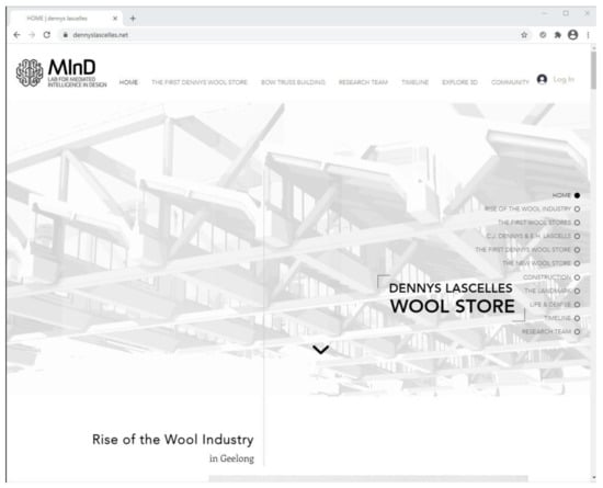 Stage 5: dissemination of the storyboard via an interactive website. The final stage of the research involved developing a bottom up user based web framework for capturing the narrative of the building, available at www.dennyslascelles.net (Figure 11). This website is, at this moment, open for user feedback and comments, and contribution through interactive forums. Any user who has memories associated with this building, as well as any images, drawings, or photographs that are relevant, are encouraged to share them through the website. It is anticipated that, after one year of running the website, feedback and contributions will be collated with the main storyline. Hence, a web portal will work in both ways.
