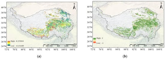 To summarize, patterns in this study actually indicate the different responses of vegetation to environmental changes along the altitude at seasonal and interannual scales. The altitudinal variation in may result from natural selection at the ecosystem scale. It involves the adaptation of plants to long-lasting environmental stresses in their habitats and actually reflects the long-term response of plants to environmental changes [1]. Actually, photosynthetic capacity is considered to be one of the ways the adaptation mechanism and survival strategies work for alpine plants on the Tibetan Plateau [75]. Change on the seasonal scale may be the result of long-term cyclically changing environmental conditions involving the influence of seasonal cycles. The variation in seasonal patterns at different altitudes may be related to phenological issues, indicating the adaptation of plants to the harsh environmental condition and the short growing season at high altitudes [15]. In contrast, the patterns on the interannual scale reflect the shortest-term response of to environmental changes in the absence of plant adaptation, which is similar to the condition of global changes when there is not enough time for plants to develop and adjust to the changing climate. In other words, the interannual pattern is the response of plants to the environment without considering their adaptation, while their adaptation possibly interferes with seasonal patterns and altitudinal variations. Therefore, all of the patterns are, in a broad sense, the response of vegetation to environmental changes, but the mechanisms behind them are actually different.