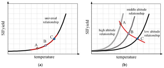 In addition, plants in high-altitude places usually suffer from severe excess light stress [16,31], as the light reaction and carbon reaction are prone to be out of sync under conditions of low temperature and high light intensity. As a pathway of energy dissipation [72], fluorescence emission may also be enhanced to dissipate excess light energy. According to studies mentioned above, the differences in the characteristics of vegetation along the altitude gradient, especially traits related to photosynthesis, have shown relatively obvious responses to the environmental conditions in their habitats along the altitude. Therefore, it is possible that SIFyield will rise along the altitude gradient as a strategy to adapt to the environment.