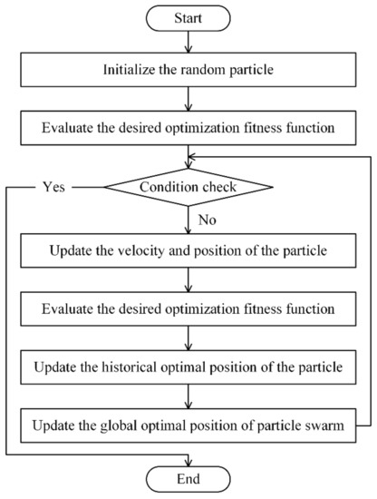 The flow chart of the particle swarm optimization (PSO) algorithm.