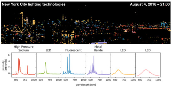 - Baur, J.; Dobler, G.; Bianco, F.; Sharma, M.; Karpf, A. Persistent Hyperspectral Observations of the Urban Lightscape. In Proceedings of the 2018 IEEE Global Conference on Signal and Information Processing (GlobalSIP), IEEE, Anaheim, CA, USA, 26–29 November 2018; pp. 983–987. [Google Scholar]