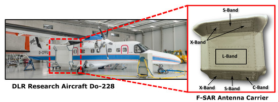 - Horn, R.; Nottensteiner, A.; Reigber, A.; Fischer, J.; Scheiber, R. F-SAR—DLR’s new multifrequency polarimetric airborne SAR. In Proceedings of the 2009 IEEE International Geoscience and Remote Sensing Symposium, Cape Town, South Africa, 12–17 July 2009; pp. 902–905. [Google Scholar]