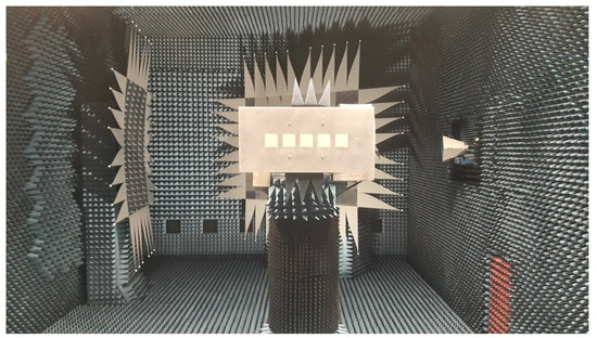 - All the measurements are carried out with a rectangular aluminum plate (50.1 × 104.2 cm) that is attached to the array, as it is shown in Figure 6. This allows for fixing the structure under testing on top of the positioner tower of the Compact Test Range.