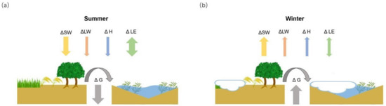Comparing the difference in surface energy fluxes between wetlands and other adjacent landcover types, Equation (1) can be reformulated as follows: