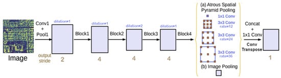 - Chen, L.-C.; Zhu, Y.; Papandreou, G.; Schroff, F.; Adam, H. Encoder-Decoder with Atrous Separable Convolution for Semantic Image Segmentation. arXiv 2018, arXiv:180202611. [Google Scholar]