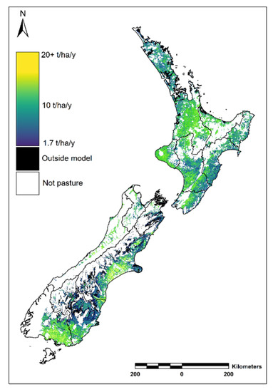The data presented in this study are openly available at https://lris.scinfo.org.nz/layer/105111-south-island-national-pasture-productivity/ (South Island, accessed on 30 March 2021), and https://lris.scinfo.org.nz/layer/105112-north-island-national-pasture-productivity/ (North Island, accessed on 30 March 2021).