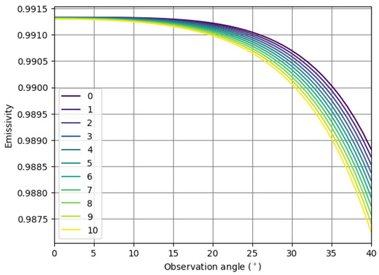 Masuda et al. [46] developed an emissivity model applying the Fresnel relationship between incident radiant power and the reflected and refracted power at the boundary between different dielectric media. It suitably represents the actual emissivity values for viewing angles up to 40 (see also [39]), and it has been widely used [47,48]. The emissivity values are calculated based on optical constants, viewing angles, and local wind speeds (for modelled emissivity values during the survey, see Figure 5). In this study, the observation angle was used as incidence angle as no large waves were observed during the data acquisition, and the water surface was assumed to be level.