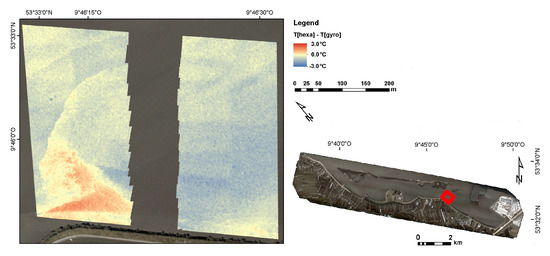 Another large unknown factor in this survey was the “skin effect” that had been observed in reference measurements on-shore at the same time as the flight survey (see [53]). It could not be thoroughly quantified as the calibration parameters of the TIR sensors were unknown and for the calculation of water bulk temperatures not necessary. For information about the water surface temperature, more measurements and more rigorous quantification of both the sensor calibration and the “skin effect” would be necessary [18].