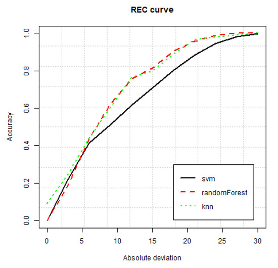 REC of machine learning algorithms over predicting severity.