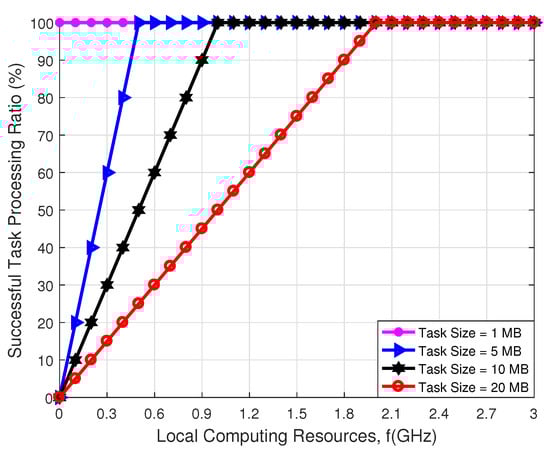 According to the above analysis, our proposed algorithm operation in the real scenario mainly includes the following steps. First, N vehicles arrive at the starting point of the road, and each vehicle has tasks waiting to be processed. Then, according to our proposed algorithm, each vehicle selects the MEC server and calculates the ratio of the offloaded task. Afterward, each vehicle uses the IEEE 802.11p protocol to transmit the unloading task. After receiving the unloading task, the MEC server on the UAV allocates computing resources to process the unloading task according to our proposed algorithm. Meanwhile, the vehicle processes the rest of the computing task locally. Finally, the MEC server on the UAV returns the processing results to the vehicle.