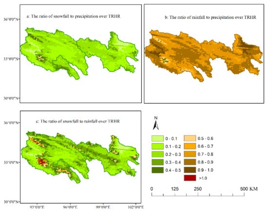 3.2. Ratio of Rainfall and Snowfall to Precipitation