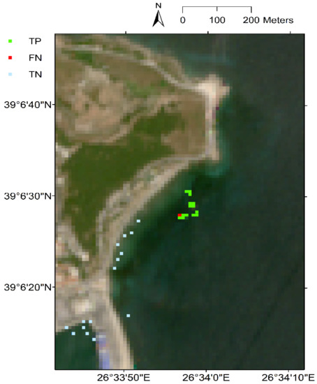 Grids with/without floating plastics belonging to the validation set at Mytilene, Greece based on in situ observations.
