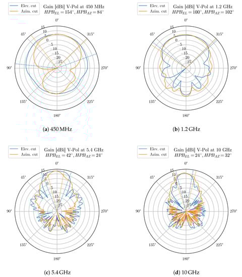 Both antennas were selected for its low cost and readily available anechoic chamber polar test data. The polar gain plots of both antennas are shown in Figure 4. If the antennas are operated in a vertical polarization configuration, the cut corresponds to the gain over azimuth.
