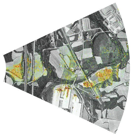 The multi-frequency GBSAR system opens up new possibilities. One of them, for instance, is the selection of a frequency band depending on the strength of decorrelation effects, such as the movement of vegetation or scatterers, such as small rocks, that yield low interferometric coherence values, and hence, low-quality data. In the case of differential interferometry, the multi-frequency capability would allow one to select a low-frequency band when the terrain movement causes severe phase wrapping problems, or to even use a low-frequency band to assist in the phase unwrapping process of a high-frequency image. Another potential application is the usage of data fusion algorithms that fuse together the information of multiple bands to yield richer datasets. For instance, areas that exhibit high coherence at the high frequencies can be sensed with the high-frequency bands, exploiting the high azimuth resolution; and areas exhibiting low coherence can be sensed instead with low-frequency bands that—even with low resolutions—can provide valuable information. Other potential applications are the ones that arise from the combination of multi-frequency and hyper-temporal (acquisitions densely spaced in time) imagery.